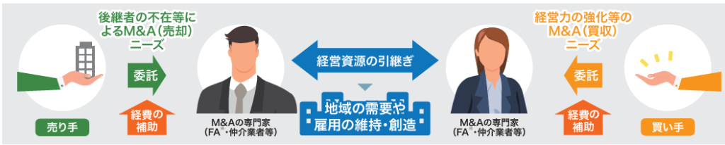 専門家活用枠とは、後継者不在や経営力強化を背景とした事業再編・事業統合等の経営資源引継ぎ(M&A)のニーズをもつ中小企業者及び個人事業主が、経営資源の引継ぎに際して活用する専門家の費用等の一部を補助することによって、地域の需要や雇用の維持・創造等を通じた経済の活性化を図ることを目的とした枠です。