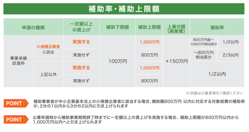 事業承継促進枠とは、親族内承継や従業員承継等の事業承継を契機として経営や事業を引き継ぐ予定である中小企業者及び個人事業主が、引き継ぐ予定である経営資源を活用するための設備投資等に係る取り組みを行う際の費用の一部を補助することで、中小企業者等の生産性を向上させることを目的とした枠です。